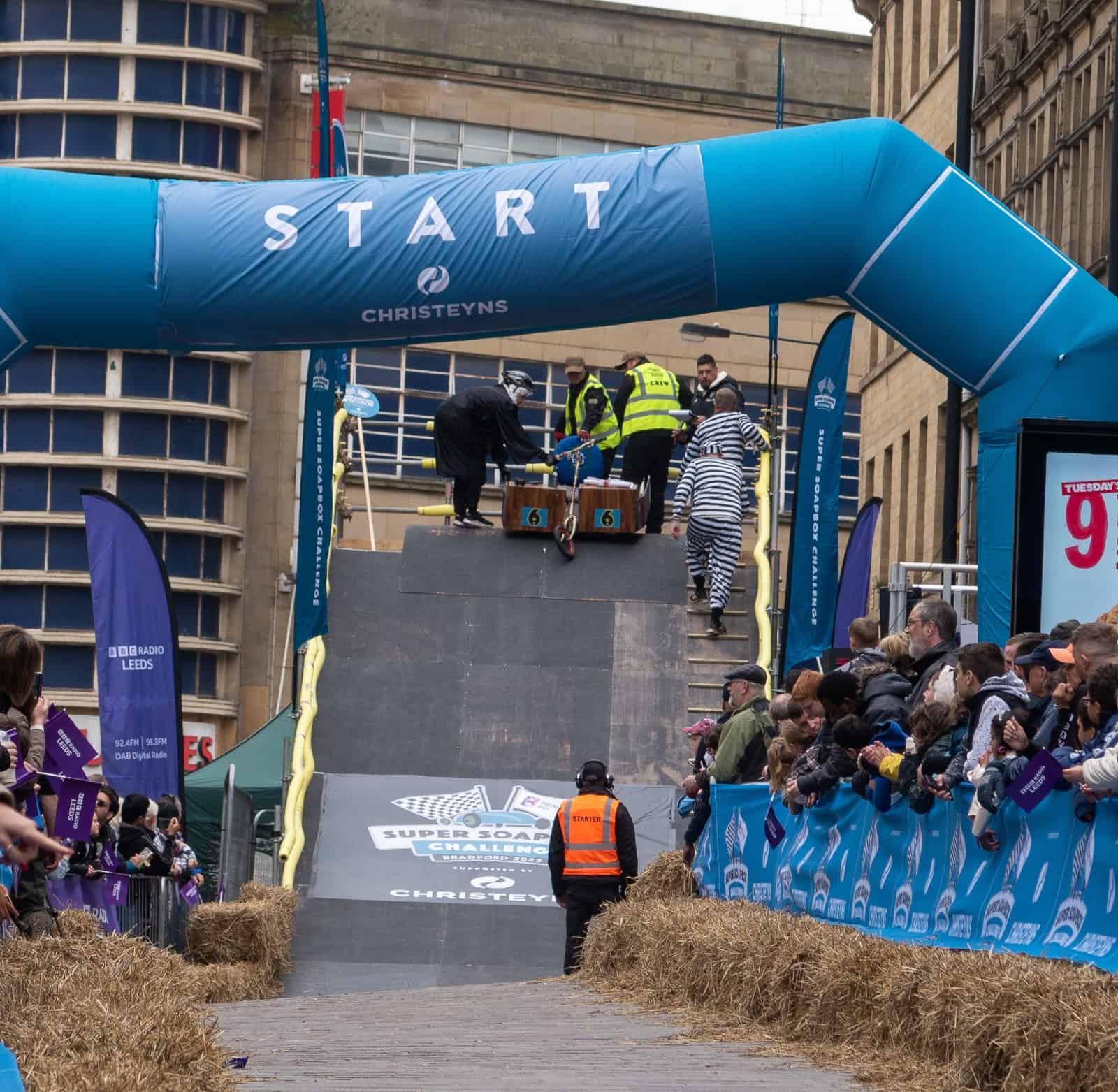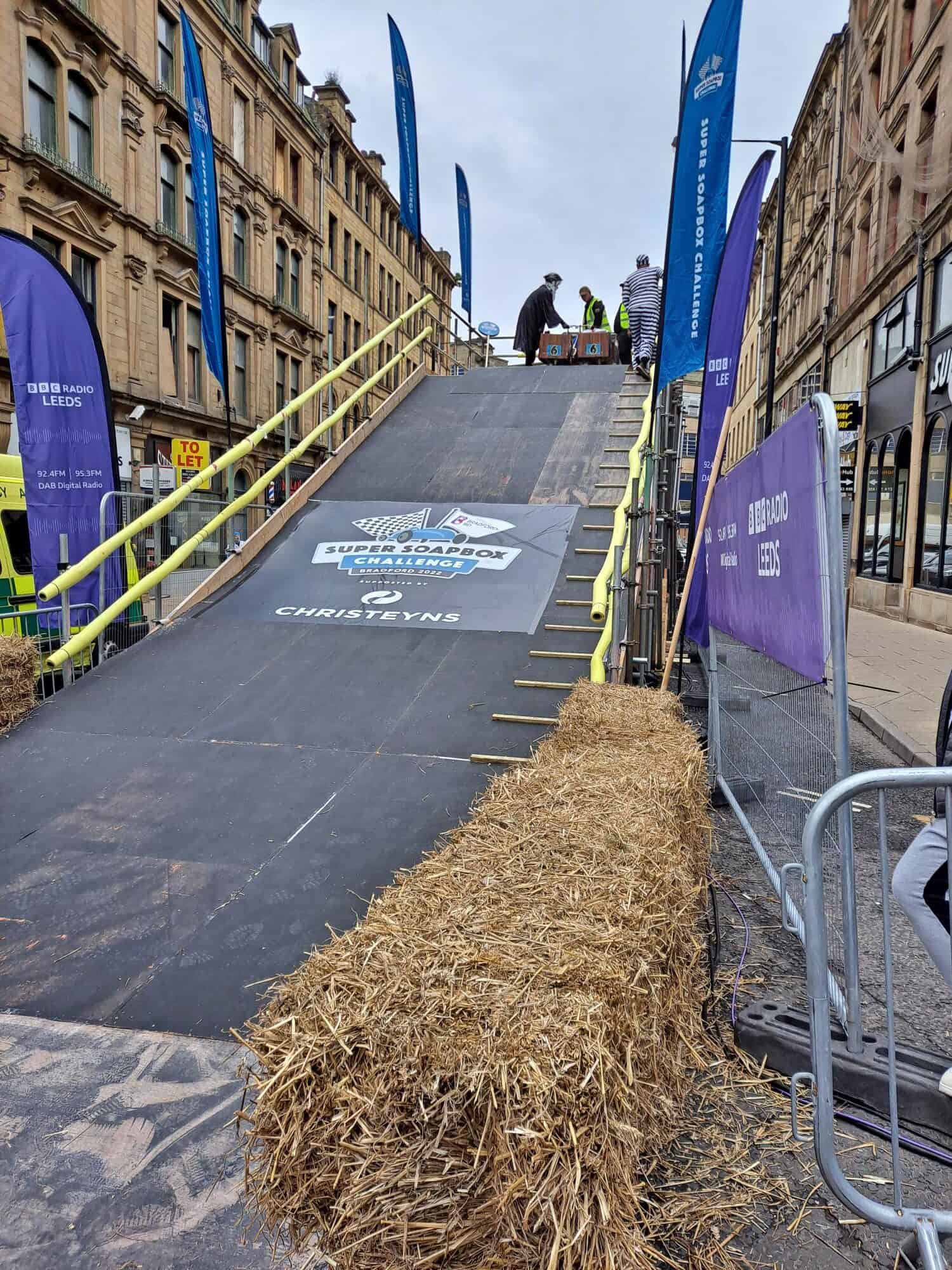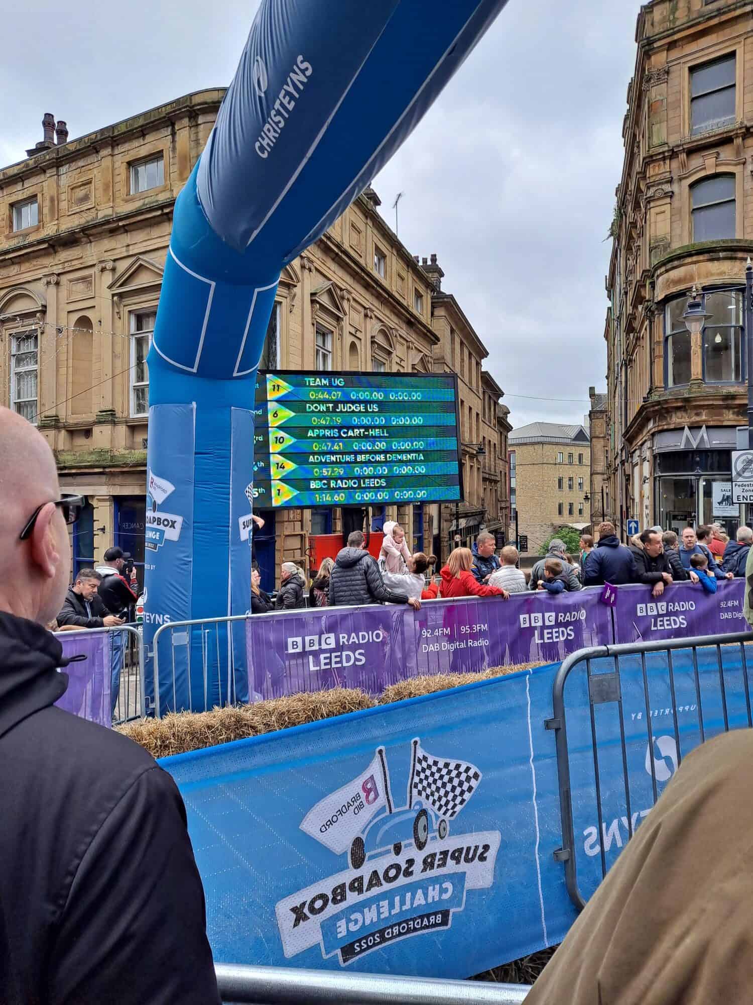 The Bradford BID Super Soapbox Challenge consisted of three heats before the 10 fastest teams then battled it out in a final, called the “Top Ten Shootout”.