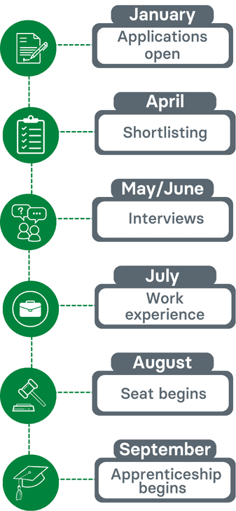 Successful applicants will be invited to join us for one week of work experience. During this week you will experience life as a solicitor apprentice in one of our practice areas.